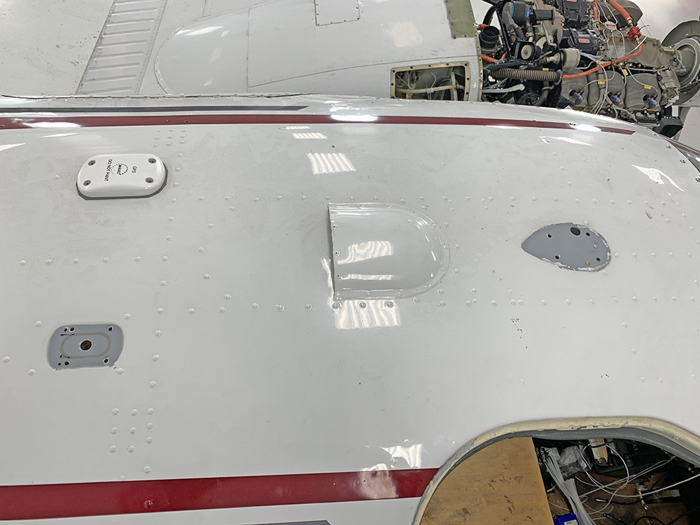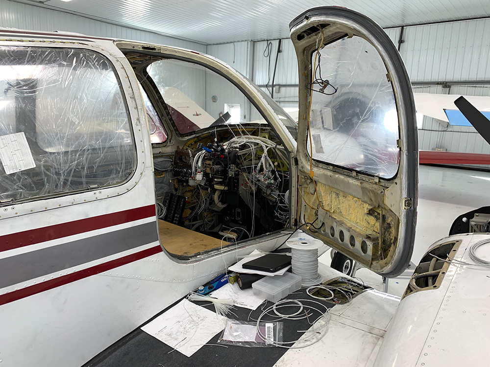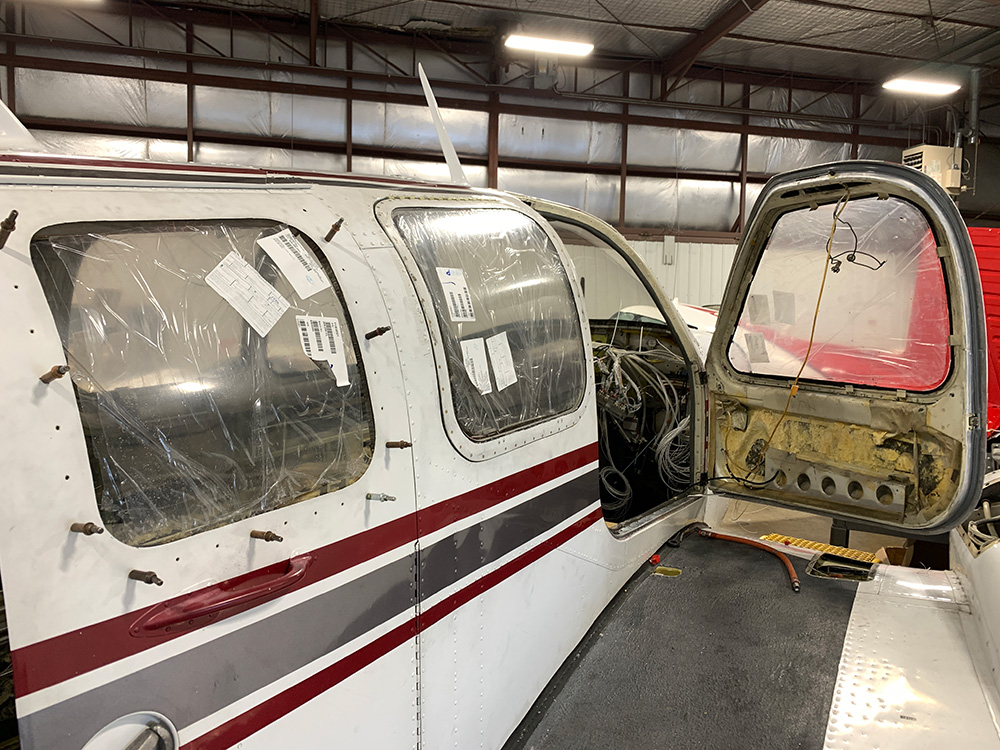 New windows, avionics wire harnesses, and Ci&ES digital fuel senders were installed. Landing light & tail light covers were polished, the battery drain port was sealed off, and obsolete antennas were removed.