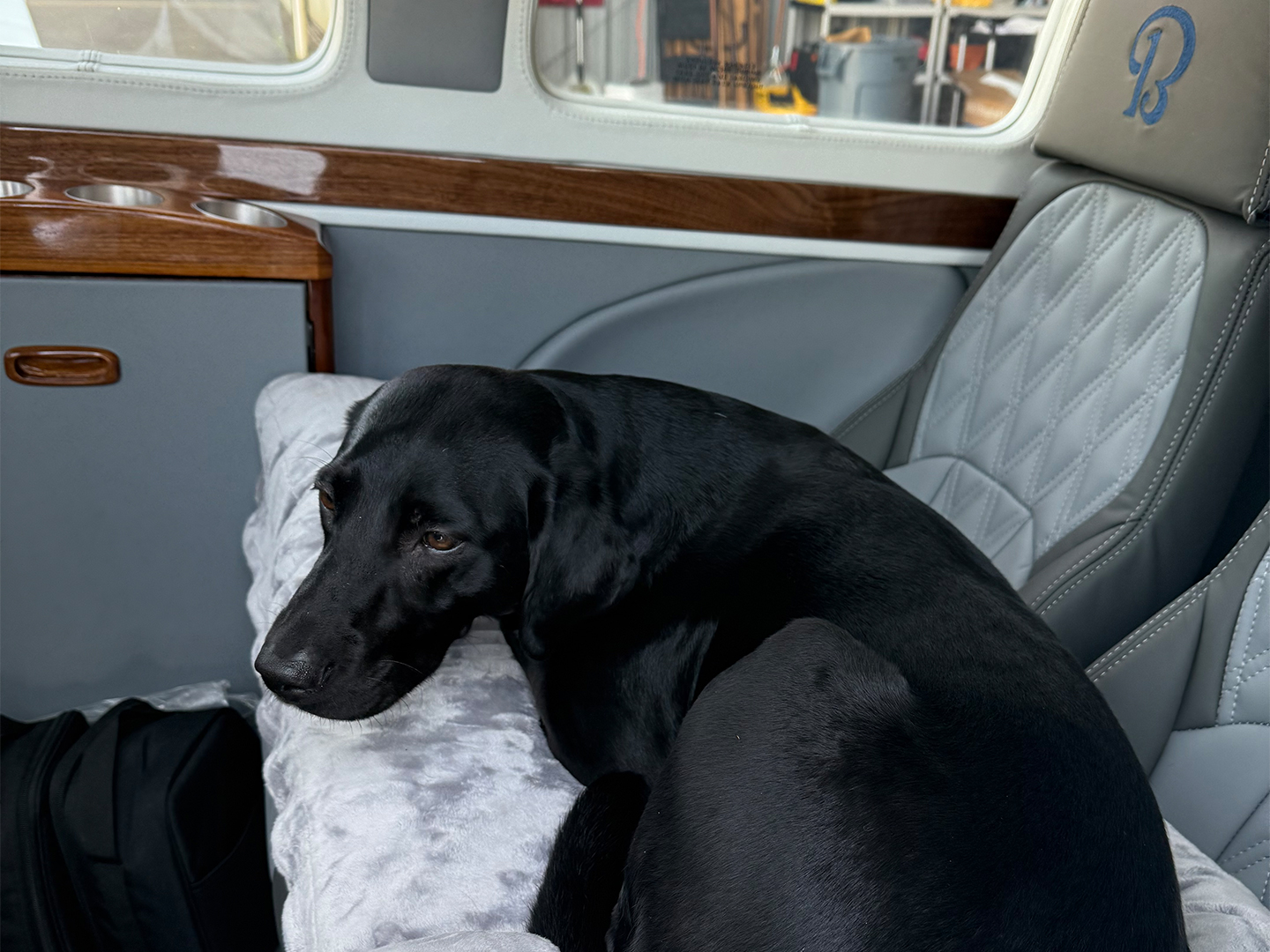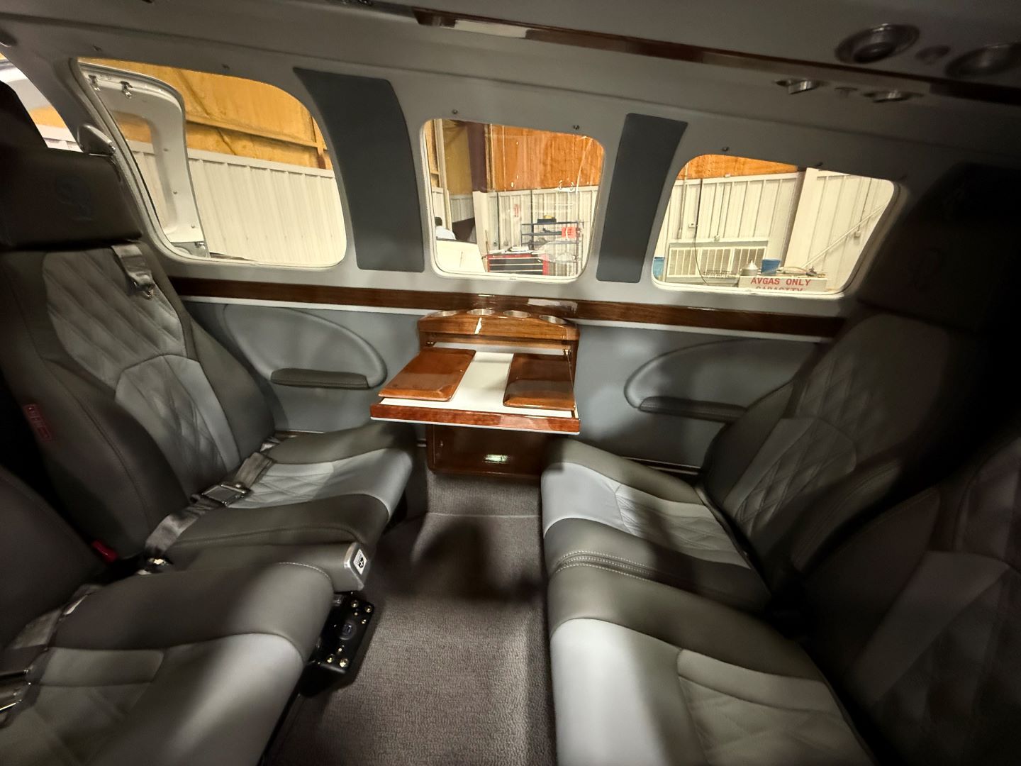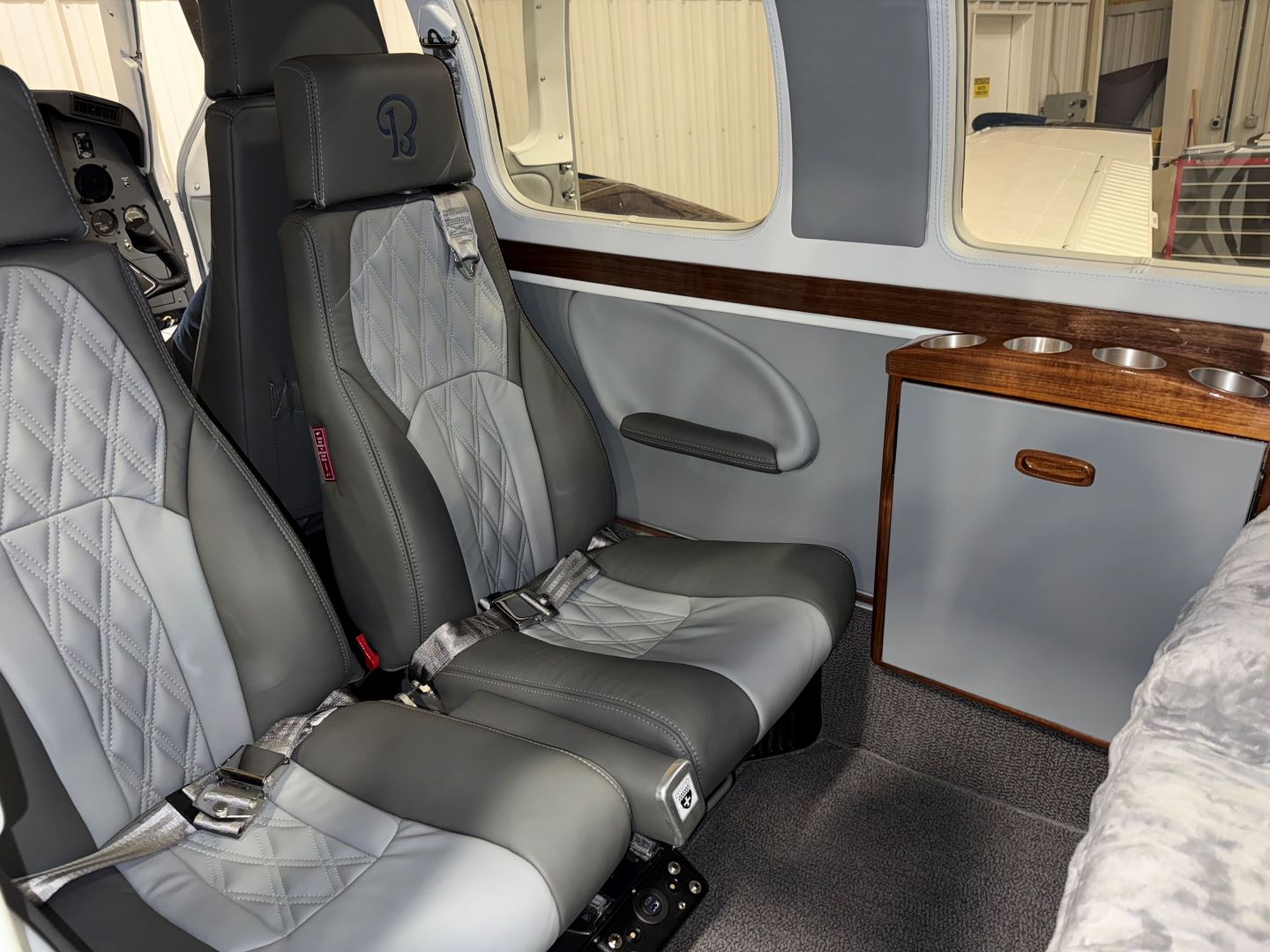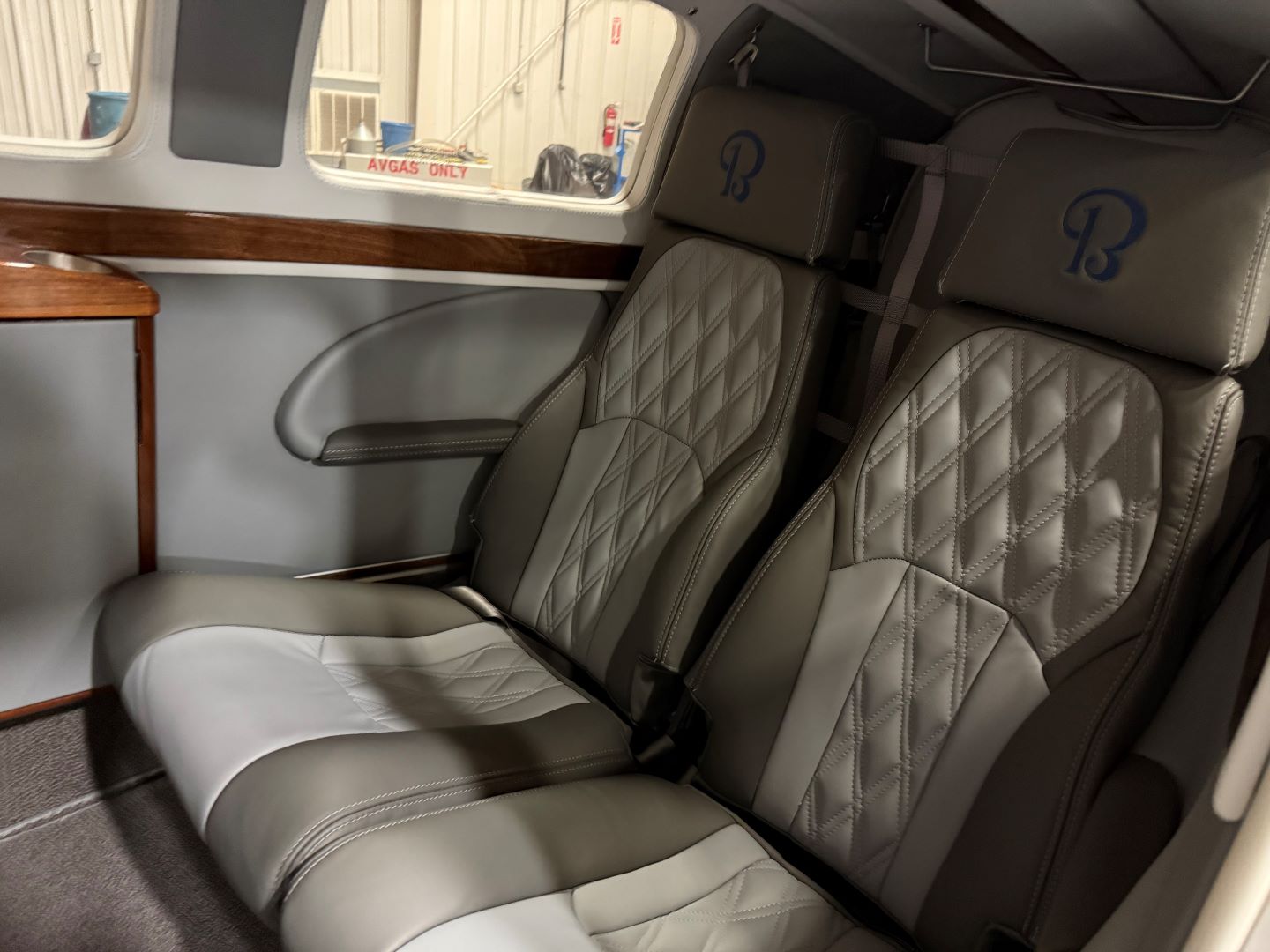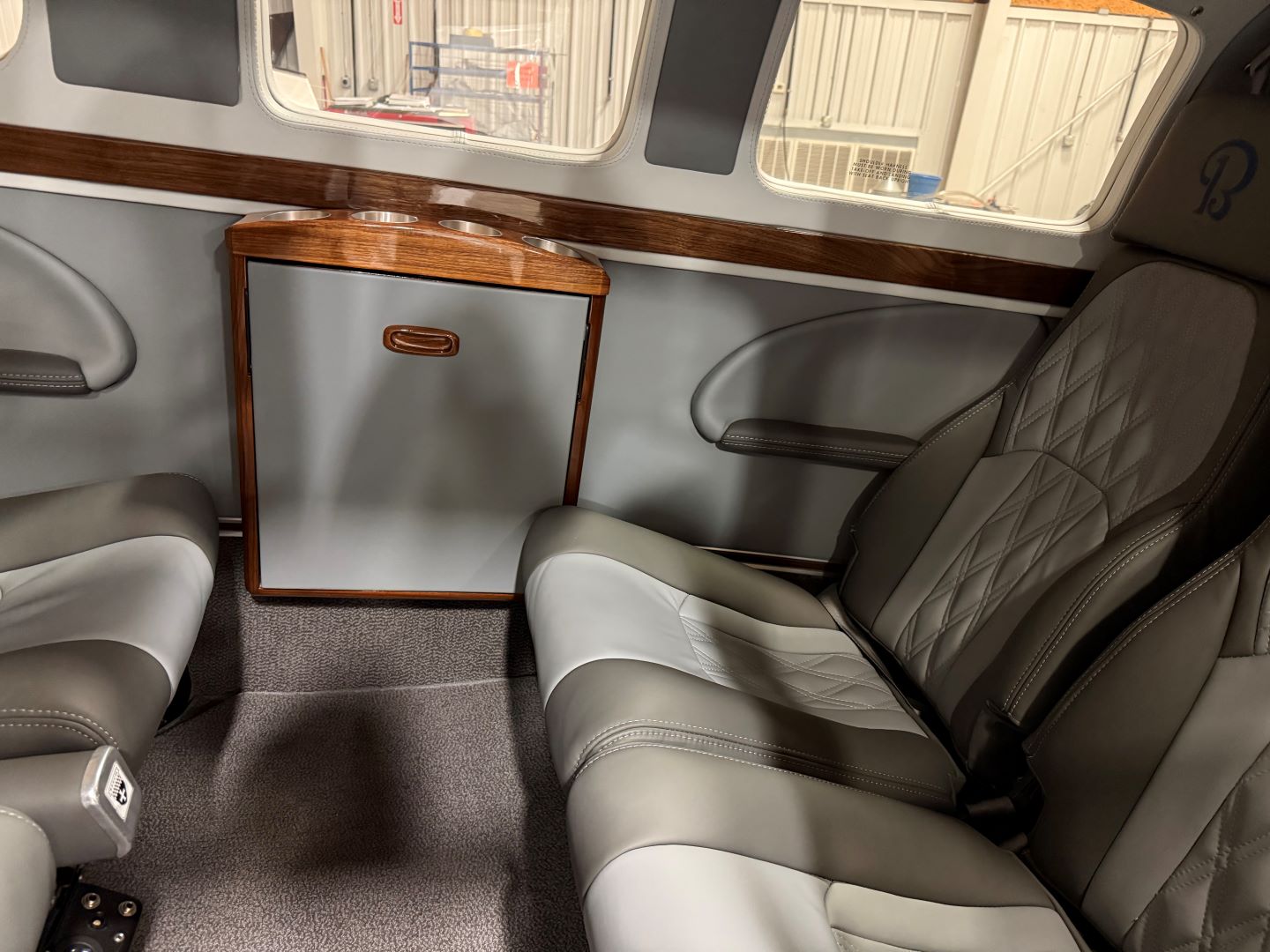 58P Baron N52HC receives a hand-crafted interior to complement its beautiful paint job and amazing avionics panel.