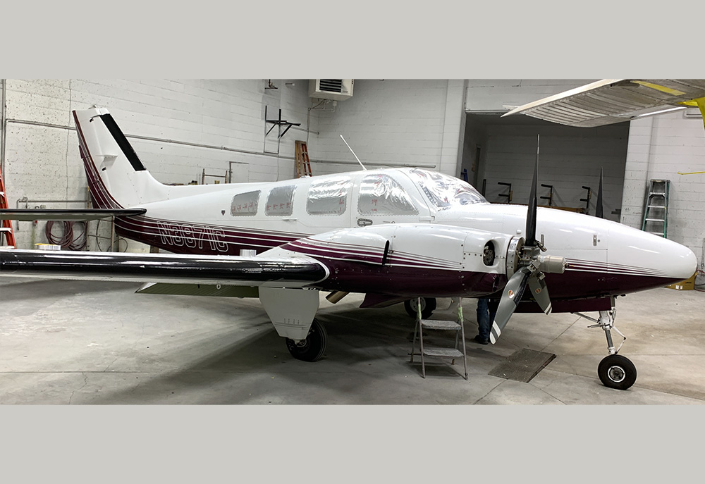 The airframe and all individual parts are painted with multiple steps of base and clearcoat. The colors are pearl white and metallic silver, red & black. The end result is gorgeous, and we enjoyed showing her off at AirVenture.