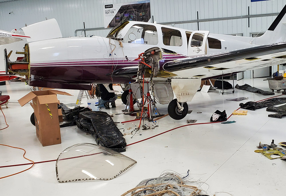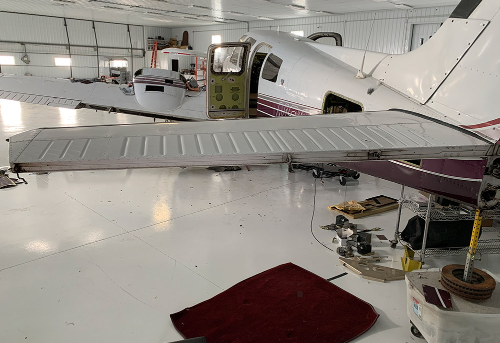 Our first step is removing the old interior and sending out the engines to be overhauled. Then it’s time for an in-depth inspection of the airframe, begin the repairs and upgrades to the airframe, and remove the old avionics, wires, and servos.